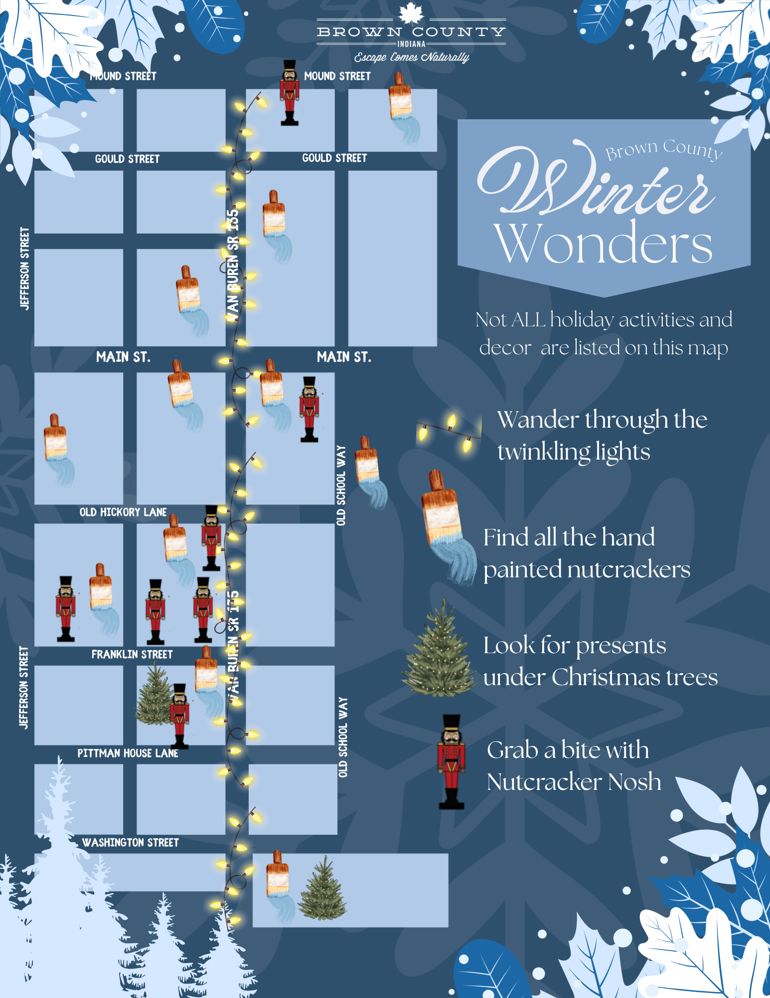 Whether you’re here for twinkling lights, cozy cafés, or holiday flavors, winter in Brown County invites you to slow down, savor, and celebrate the season.