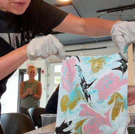 Join Indianapolis artist Hannah Hadley for a hands-on marbling workshop that brings the mesmerizing art of marbling to both paper and fabric. Rooted in centuries-old tradition, marbling is a playful and meditative process where color dances on the surface of water before being transferred to paper or cloth—each piece entirely one of a kind.