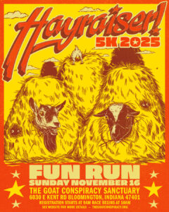 The Goat Conspiracy Sanctuary would love for you to join us for a fun run through the fields of The Goat Conspiracy Sanctuary. Our first ever HAYRAISER 5k gives you the chance to get out in nature, meet our amazing goat and chicken residents, and help us fundraise for winter.