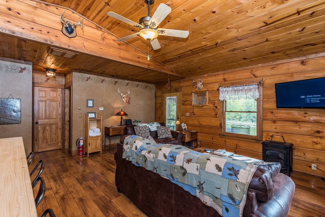 The cabin also provides DSL service, a DVD player and an Nintendo NEC Classic console . The whitetail deer theme is evident throughout the interior of the cabin…an appropriate look for nature enthusiasts.