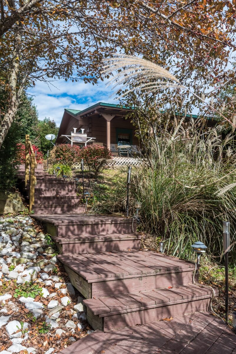 A nice wide porch outfitted with rockers is an inviting spot to look out over the countryside, the pond, and the many blooming flowers and shrubs you’ll find throughout the property. If you’d like to tour some beautiful flower gardens, and the art gallery of early Brown County artist, the late T. C. Steele, you are just 1.5 miles from his former property. The T. C. Steele State Historic Site is so close to Big Buck cabin, you really should drive (or hike) over there and have a look around. T. C.’s wife, Selma, created beautiful wildflower gardens at “The House of The Singing Winds” which are lovingly maintained today by local volunteers; this property is a treasure not to be missed.