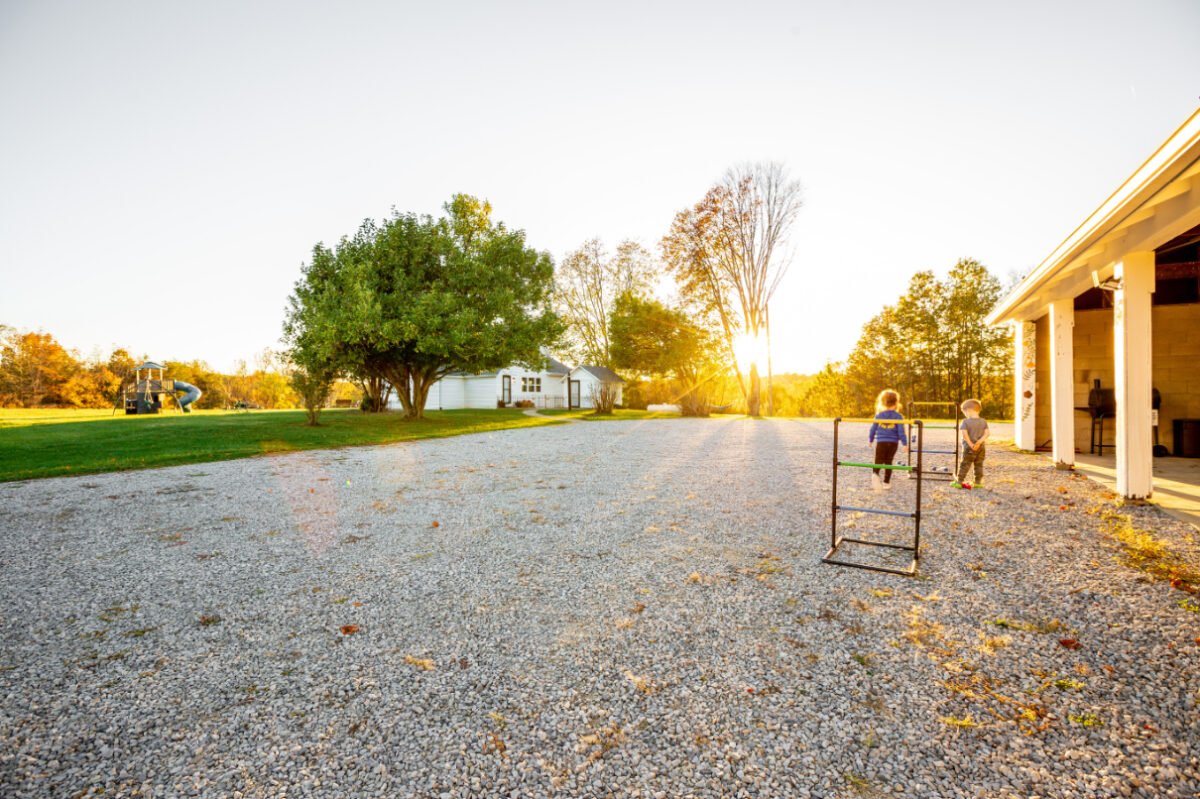Game barn (cornhole, picnic tables, grill, outdoor games) – great for rainy days