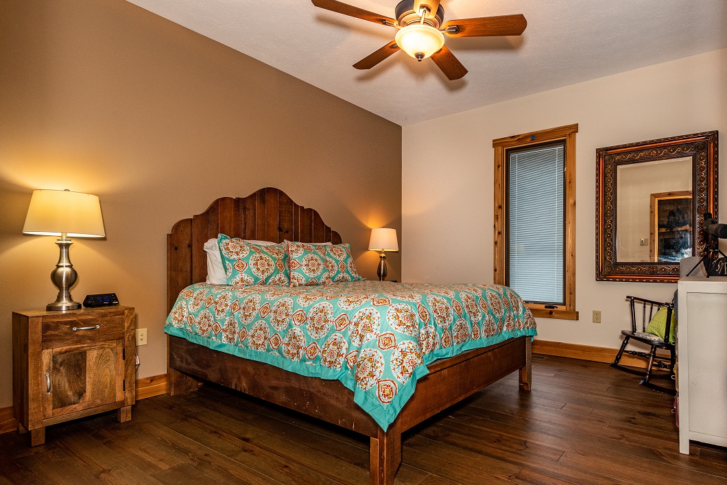 Stainless steel appliances and plenty of counter space in the kitchen will encourage Bluebird Nest’s guests to experiment with a new recipe or two, or simply make a batch of brownies for all to enjoy. There’s ample room to lay out the cook’s offerings… ample room to lay out offerings in the kitchen or at the dining table. Some folks have been known to use one table for meals, and the other for creative pursuits such as scrapbooking, sewing, making hand-tied fishing lures, or family game night. What will be your preference? Besides all this, you’ll find a powder room conveniently located on this main level as well.