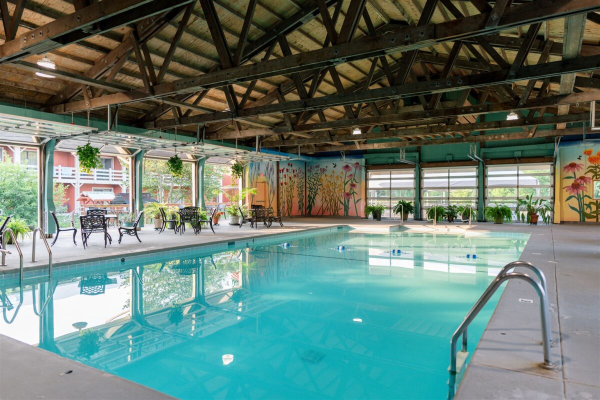 The Brown County Inn has everything you need in one place! It has 99 rooms and 2 big suites, just a short walk from downtown Nashville. It’s more than a hotel—it’s like a mini resort! You can eat at the restaurant, swim in the pool all year, play mini golf, explore the garden, and hang out on the sun deck. There’s also space for big parties or meetings, and fun areas for kids to play!