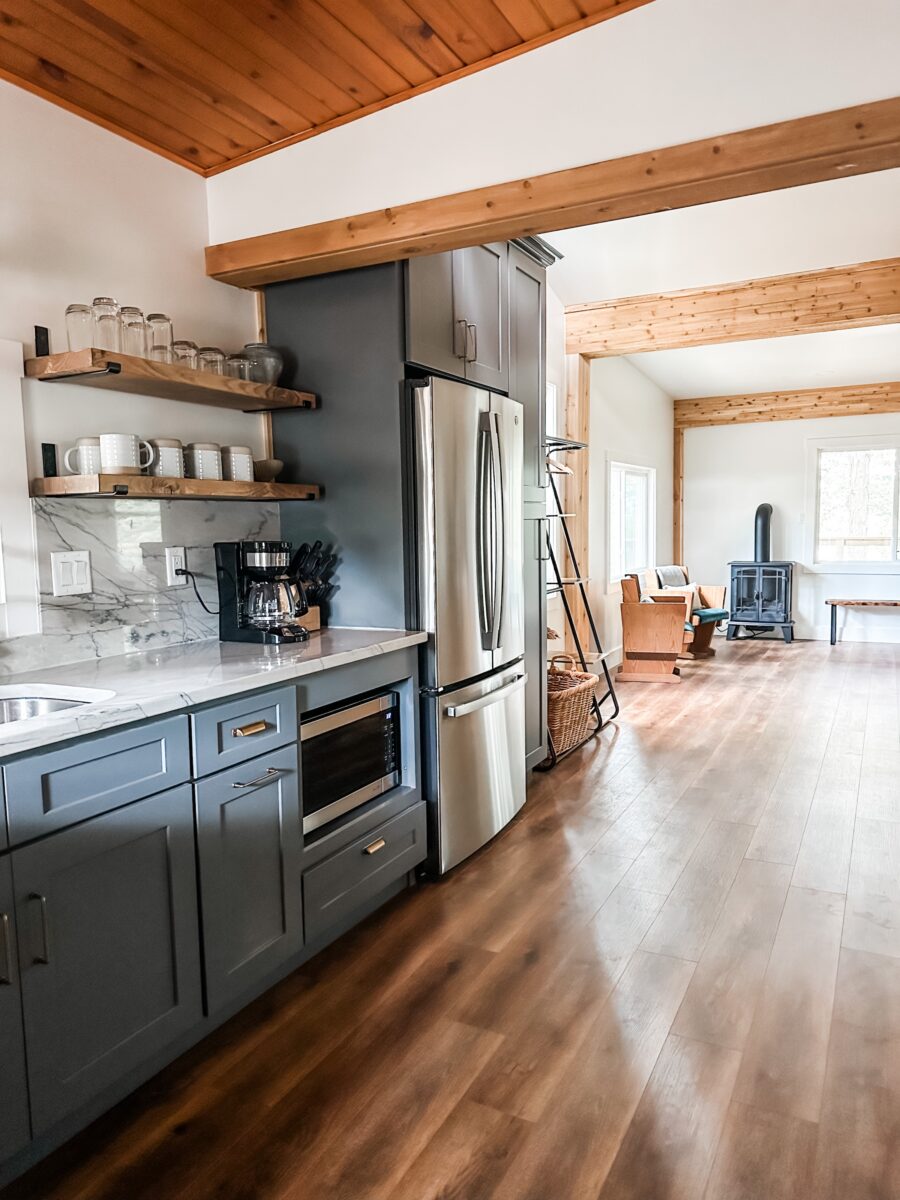 – Fully Stocked Kitchen – Quartzite countertops, stainless appliances, drip coffee maker & artisan stoneware mugs