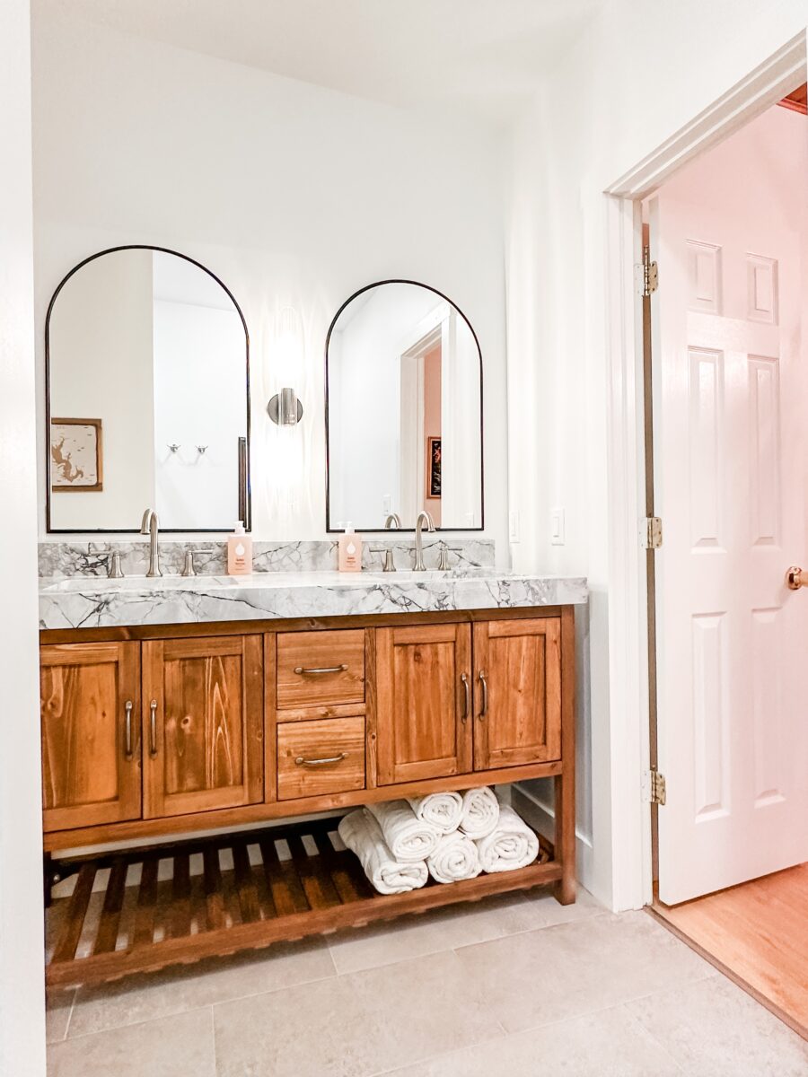– Luxury Bathroom – Double marble vanity & spacious walk-in glass shower