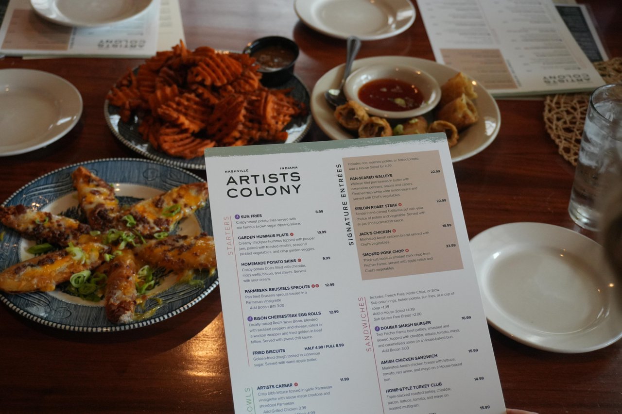 Artists Colony Inn Restaurant in Nashville, Indiana, serves scratch-made American cuisine in a warm, inviting setting in the heart of Brown County. Known for its hearty breakfasts, signature appetizers like Sun Fries, and classic sandwiches, the menu highlights down-home favorites made fresh in-house. Located inside the historic Artists Colony Inn, the restaurant offers a cozy atmosphere perfect for breakfast, lunch, or dinner and is a favorite stop for both guests and visitors exploring downtown Nashville’s shops and galleries.